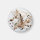 Fantastisk, eterisk bild av en liten porslinsdocka omgiven av torkade blommor och löv. En snygg bild som du kan lägga till i en magnetsamling.