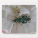 I denna muspekare finns ett foto av en blåaktig grönt färgad av den brittiska arten Flower Beetle sitta på en vit nejlikblomma. Fotot togs med hjälp av makrofotografi för att visa detaljrikedomen och färg i denna vackra skaldjursart.