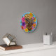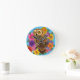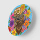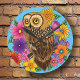 Uggla sitta, bland en bukett av färgstarka sommarblommor i en blå bakgrund