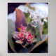 Färgfotografi av en liten blomknopp som togs tidigt på morgonen efter ett nattligt snöfall i Kalifornien.