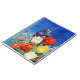 Vacker blomma arrangemang av tulpaner med hummingfåglar och fjäril på en varierad blå bakgrund