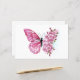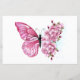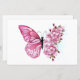 Arrangemanga av rosa butterfly med rosa japanska körsbärsprodukter på vit bakgrund.