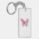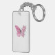 Arrangemanga av rosa butterfly med rosa japanska körsbärsprodukter på vit bakgrund.