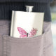 Arrangemanga av rosa butterfly med rosa japanska körsbärsprodukter på vit bakgrund.