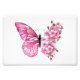 Arrangemanga av rosa butterfly med rosa japanska körsbärsprodukter på vit bakgrund.