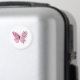 Arrangemanga av rosa butterfly med rosa japanska körsbärsprodukter på vit bakgrund.