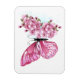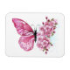 Arrangemanga av rosa butterfly med rosa japanska körsbärsprodukter på vit bakgrund.