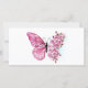 Arrangemanga av rosa butterfly med rosa japanska körsbärsprodukter på vit bakgrund.