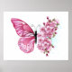 Arrangemanga av rosa butterfly med rosa japanska körsbärsprodukter på vit bakgrund.