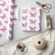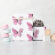 Arrangemanga av rosa butterfly med rosa japanska körsbärsprodukter på vit bakgrund.