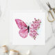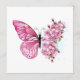 Arrangemanga av rosa butterfly med rosa japanska körsbärsprodukter på vit bakgrund.