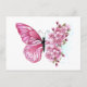 Arrangemanga av rosa butterfly med rosa japanska körsbärsprodukter på vit bakgrund.