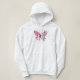 Arrangemanga av rosa butterfly med rosa japanska körsbärsprodukter på vit bakgrund.