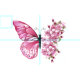 Arrangemanga av rosa butterfly med rosa japanska körsbärsprodukter på vit bakgrund.