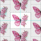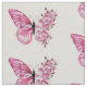 Arrangemanga av rosa butterfly med rosa japanska körsbärsprodukter på vit bakgrund.