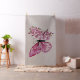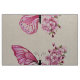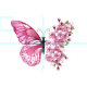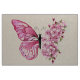 Arrangemanga av rosa butterfly med rosa japanska körsbärsprodukter på vit bakgrund.