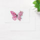 Arrangemanga av rosa butterfly med rosa japanska körsbärsprodukter på vit bakgrund.