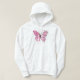 Flower arrangement of pink butterfly with pink Japanese cherry blossoms on white background.