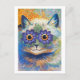 Ett vykort för bra med ett djurexempel på en katt med lila blommor runt ögon, av den brittiska konstnären Louis Wain (1860-1939). Han var en illustratör som var bäst känd för sitt teckning av katter under art nouveau-perioden.