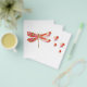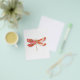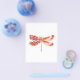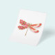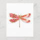 Artistiskt ritad, guld, smyckad drakfluga med rött och vingar dekorerad med rött, blomning, smyckad japansk körsbär på vit bakgrund. Guld Dragonfly.