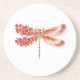 Artistiskt ritad, guld, smyckad drakfluga med rött och vingar dekorerad med rött, blomning, smyckad japansk körsbär på vit bakgrund. Guld Dragonfly.