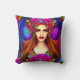 Det här är ett vackert dekorativ kudde med en blomsterdrottning i pulserande färg av nyck, lila och blues.