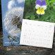 En 12-månaders kalender med närliggande foton av blommor: Dandelion Clocks, Crocus, Borage, Muscari Neglectum, Marigold, Vild Pansy, Foxglove, Daisy, Myosotis, Cerastium Tomentosum, Orange Hawkweed, Geranium Molle och Solros!