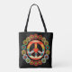 Fredsteckenet Retro-blomman Tote Bag är en snyggt och mångsidig väska som är perfekt för vardaglig använda. Säcken är gjord av ett hållbart material och har en vacker öga-fångstretro mönster. Den här utformningen kommer säkert att vända huvudet! Du kan lägga till anpassningsbar genom att använda verktyg i designen.