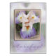 Ett foto av en lavender iris med texten: Kommer du att vara min blomma? Perfektens inbjudan till den perfekt lilla flickan.