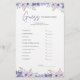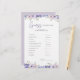 "Flower gissa det Prisa Möhippans spelkort" är en snygg och kreativ aktivitet för möhippor. Det här spelet har vackra lila blommor som inspirerar gästerna att skissera sina drömklänningar i bröllop. Med sitt charmerande tema för blommigt tillför det här spelet lite elegans till firande. Låt gästerna visa sitt konstnärliga sinne och sin fantasi med den här roligten och det engagerande möhippan!
