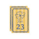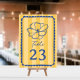 Bild på blommigten med blå över gult rand med blå text och hand plockade ram.