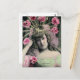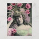 Vintage målat foto av en ung kvinna som bär hatt med vad som ser ut som rosa nejlikor som sträcker sig över hennes huvud på stjälkar