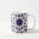 Flower mandala mugg med ett kaleidoskopiskt mönster skapat från en vattenfärg och bläck teckning från en abstrakt lotus blomma i blått, violett och svart.