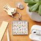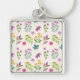 Flower Mönster Vår Blommigt Fyrkantig Silverfärgad Nyckelring