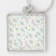 Flower Mönster Vår Blommigt Fyrkantig Silverfärgad Nyckelring