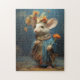 Flower Power Mouse-pussel. © Jigszawa Wonderland at Zazzle. En Hippie-mus med blommor i håret och en lång blå robe.