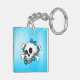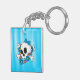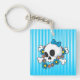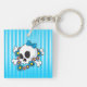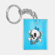 Cute skalle och korsben med blå båge och färgstarka blommor.