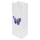 Smycken, blå, safir, mousserande blomfjäril med vinge som dekoreras med blå, ädelblommor med guld löv på vit bakgrund.