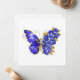 Smycken, blå, safir, mousserande blomfjäril med vinge som dekoreras med blå, ädelblommor med guld löv på vit bakgrund.
