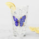 Smycken, blå, safir, mousserande blomfjäril med vinge som dekoreras med blå, ädelblommor med guld löv på vit bakgrund.