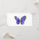 Smycken, blå, safir, mousserande blomfjäril med vinge som dekoreras med blå, ädelblommor med guld löv på vit bakgrund.