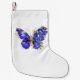 Smycken, blå, safir, mousserande blomfjäril med vinge som dekoreras med blå, ädelblommor med guld löv på vit bakgrund.