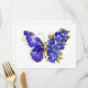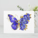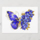 Smycken, blå, safir, mousserande blomfjäril med vinge som dekoreras med blå, ädelblommor med guld löv på vit bakgrund.