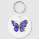 Smycken, blå, safir, mousserande blomfjäril med vinge som dekoreras med blå, ädelblommor med guld löv på vit bakgrund.