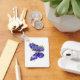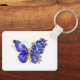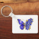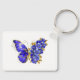 Smycken, blå, safir, mousserande blomfjäril med vinge som dekoreras med blå, ädelblommor med guld löv på vit bakgrund.