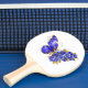 Smycken, blå, safir, mousserande blomfjäril med vinge som dekoreras med blå, ädelblommor med guld löv på vit bakgrund.