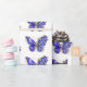 Smycken, blå, safir, mousserande blomfjäril med vinge som dekoreras med blå, ädelblommor med guld löv på vit bakgrund.