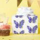 Jewelry, blue, sapphire, sparkling flower butterfly with wing decorated with blue, precious flowers with gold leaves on white background.
