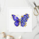 Smycken, blå, safir, mousserande blomfjäril med vinge som dekoreras med blå, ädelblommor med guld löv på vit bakgrund.