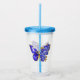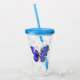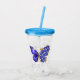 Smycken, blå, safir, mousserande blomfjäril med vinge som dekoreras med blå, ädelblommor med guld löv på vit bakgrund.